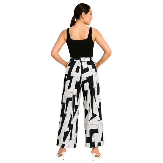 ABSTRACT AFFAIR BLACK & WHITE WIDE LEG PALAZZO PANTS