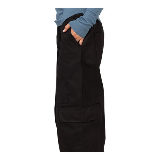 Black Elastic Waist Wide - Leg Cargo Pants