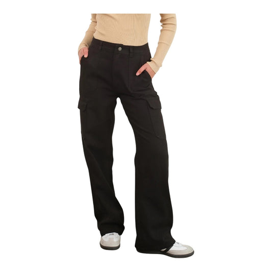 Black High Waisted Wide Leg Cargo Pants