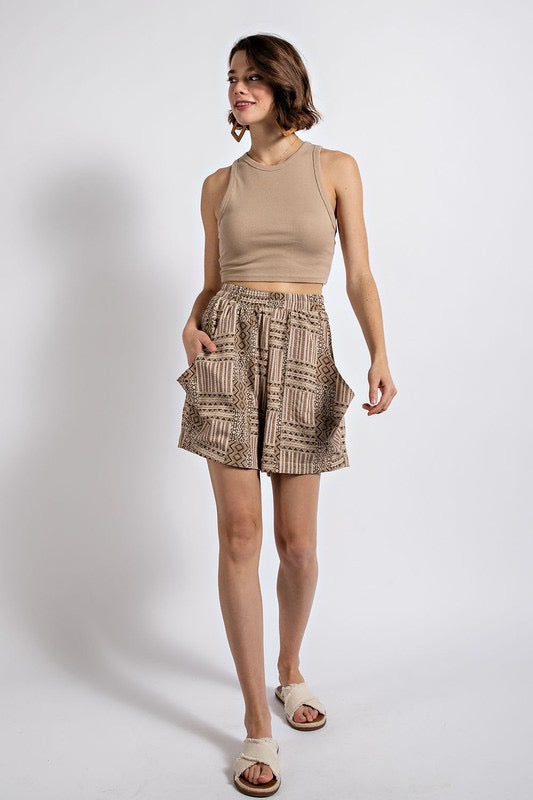 AZTEC TRIBAL PRINT BROWN POCKET SHORTS