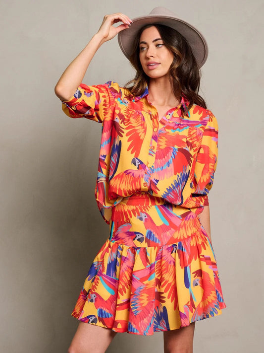 RIO RHYTHM TROPICAL BIRD PRINT MINI SKIRT SET