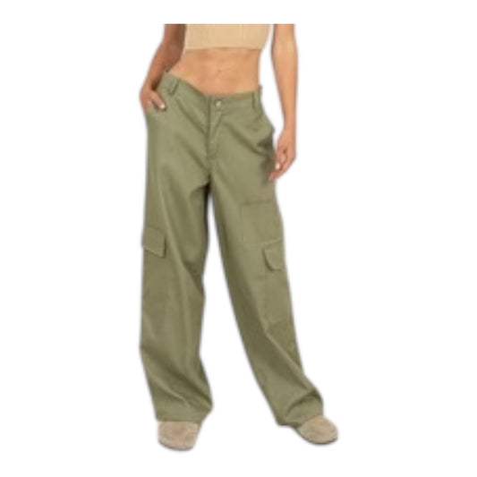 Olive Green Elastic Waist Wide - Leg Cargo Pants