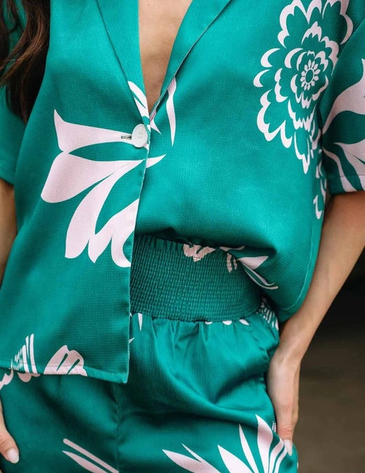 FLORAL BUTTON DOWN ELASTIC WAIST SHORTS SET