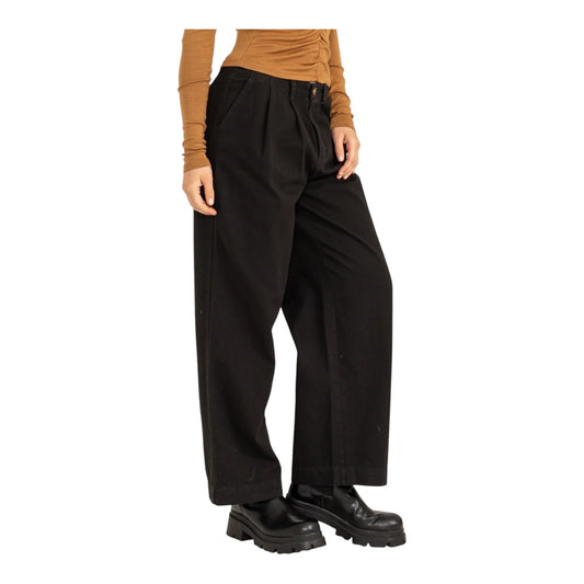 Black Pleated Mid- Rise Wide Leg Pants