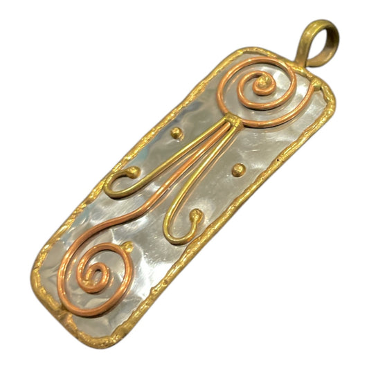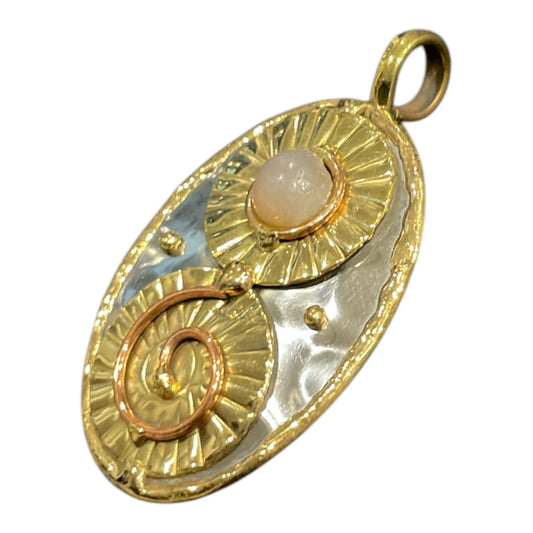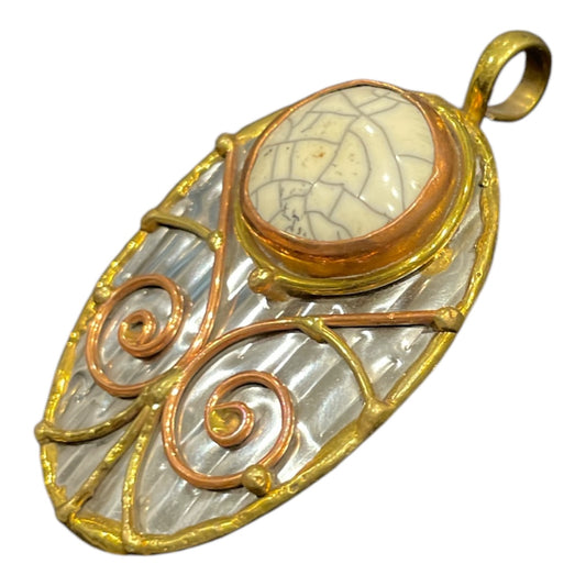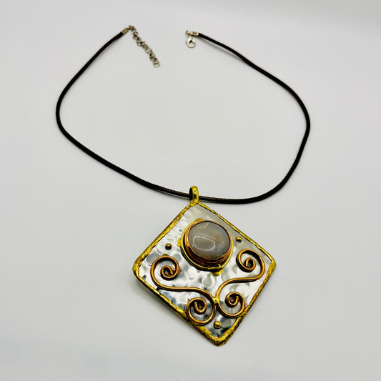 Stainless Steel Mix Metal Milky Cream Gemstone Pendant Brass/ Copper with Leather Cord