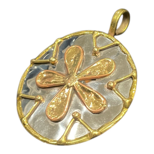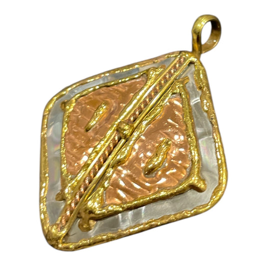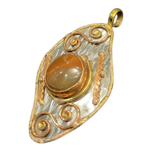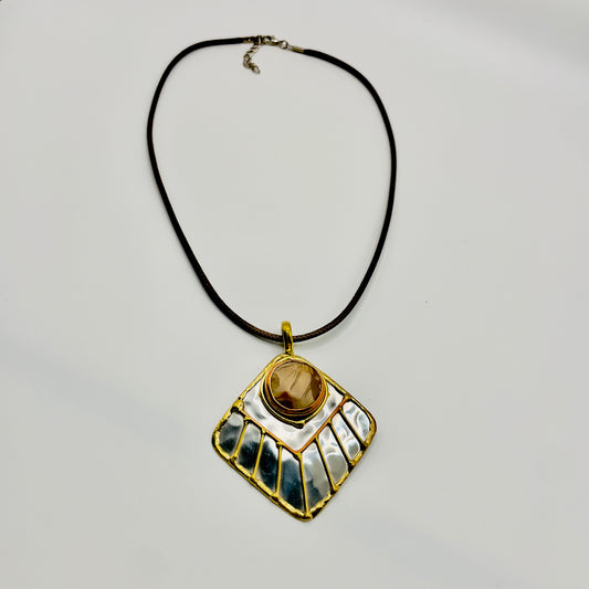 Stainless Steel Mix Metal Cream Brown Gemstone Pendant Brass/ Copper with Leather Cord