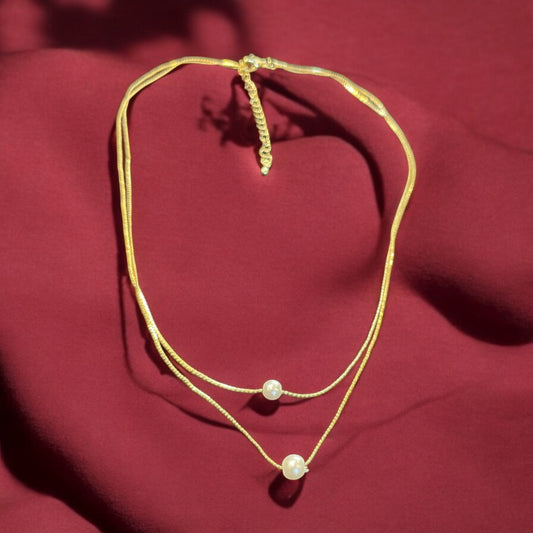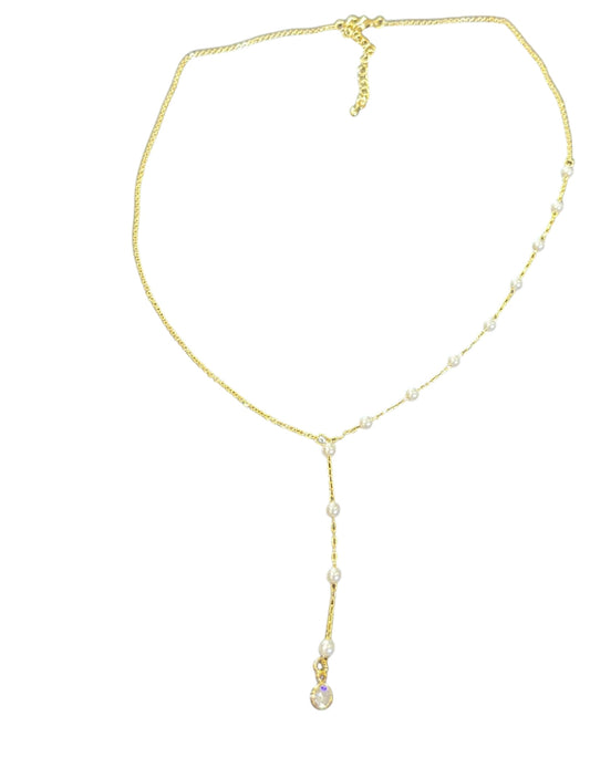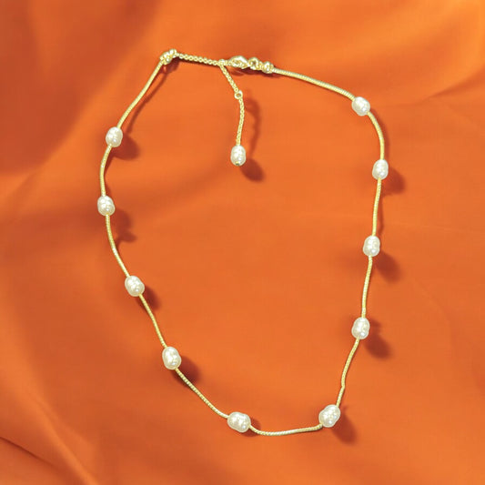 Gold Dipped Fresh Water Pearl Station Beaded Chain Necklace