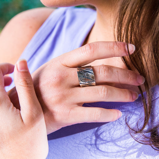 Handmade Kashi Hammered Design antique silver plated adjustable Ring