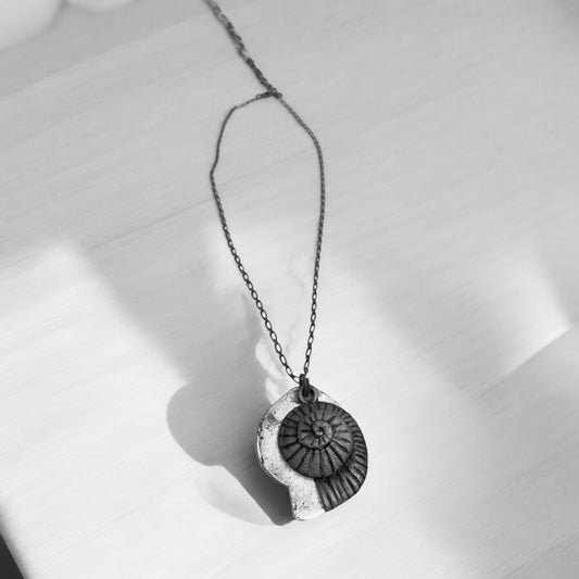Antique Silver Nautilus Shell Silver Pendent Necklace