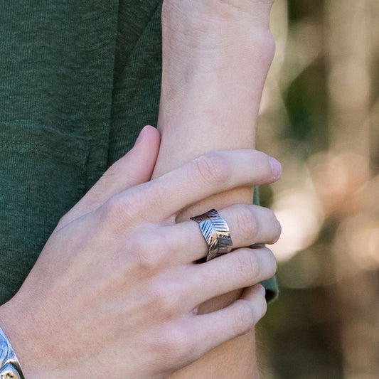 Handmade Banana Leaf Kashi antique silver plated adjustable ring.