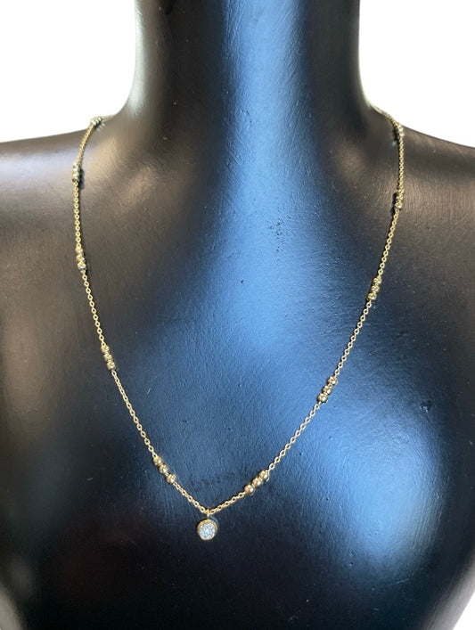 Gold Mini Pave Coin Pendant Chain Necklace