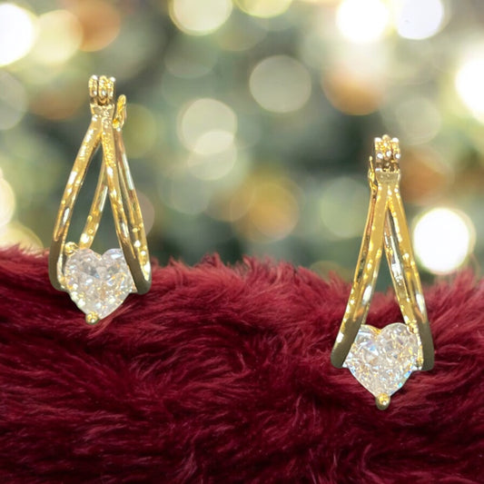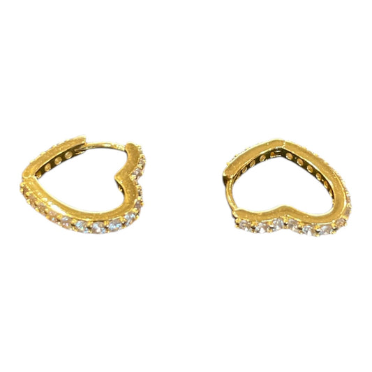 Gold Dipped Cz Heart Hinge Hoop Earrings