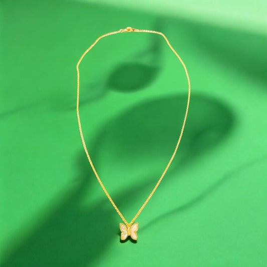 Gold Dipped Shell And Cz Pave Butterfly Pendant Necklace