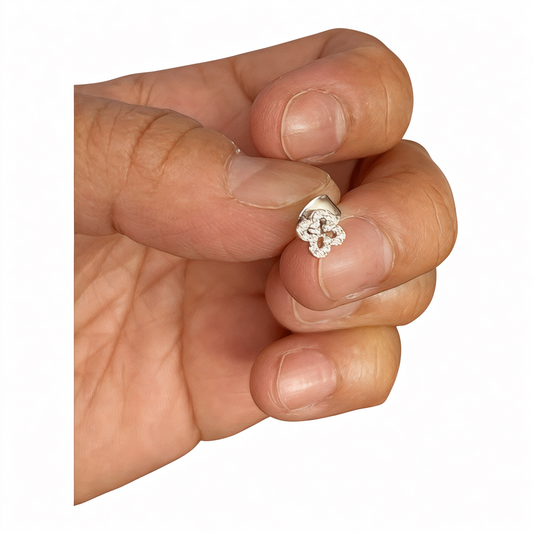 Silver Mini Cz Pave Clover Stud Earrings