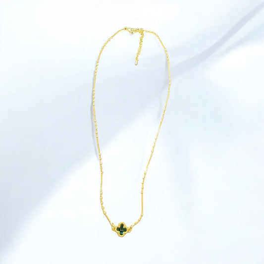Gold Dipped Emerald Rhinestone Clover Pendant Necklace