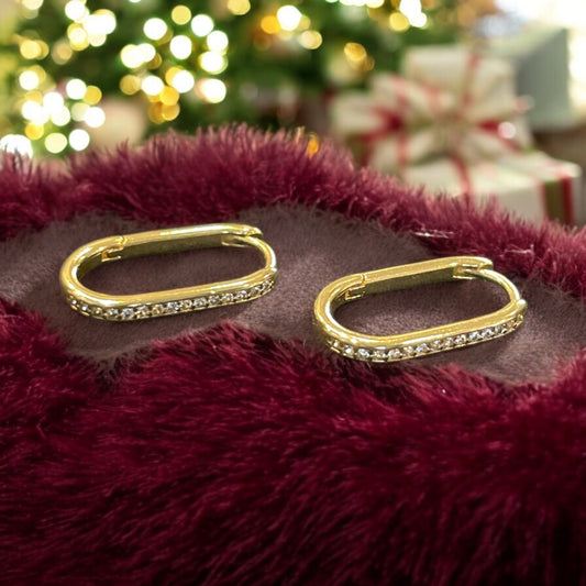 Gold Dipped Cz Pave Edge Oval Hoop Earrings