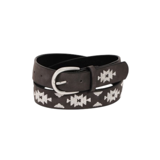 SADDLE STITCH BOHO WESTERN EMBROIDERED BELT W/SILVER BUCKLE