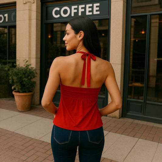 SLINKY TWIST NECK DARK BLUE TANK TOP