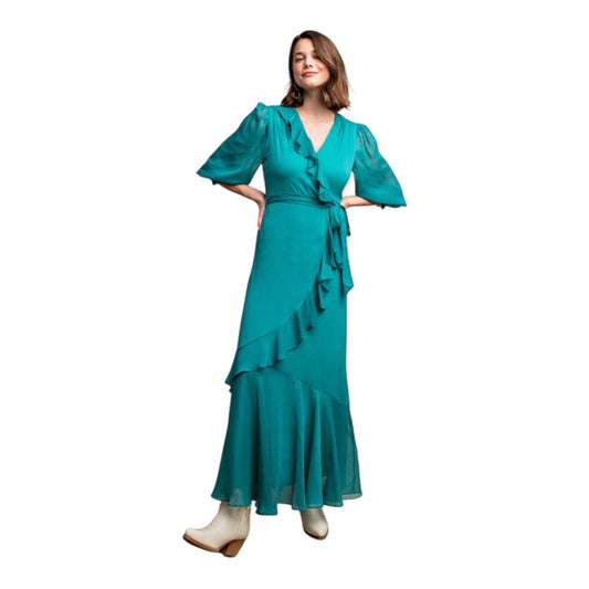 OPEN BACK FLORAL WRAP MAXI DRESS