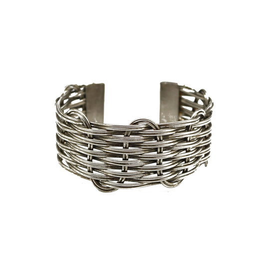 Handcrafted Silver Tone Basket weave cuff bracelet