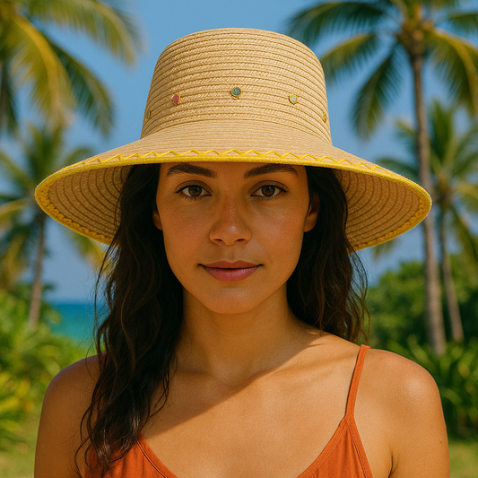 Festival Bucket Straw Hat with Rhinestone Embellishments