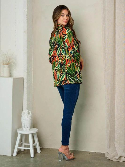 JUNGLE MUSE FLORAL OPEN FORNT 3/4 SLEEVE BLAZER