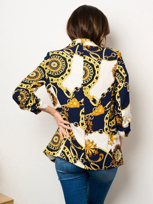 MEDUSA MODE LUXURY CHAIN PRINT RUCHED SLEEVES BLAZER