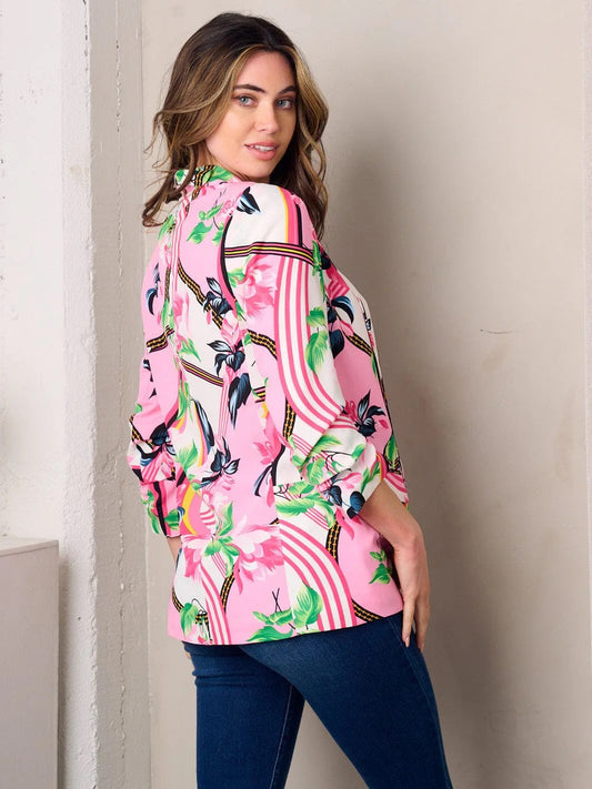 BLOOMLINE OPEN FRONT PINK FLORAL PRINT 3/4 SLEEVE BLAZER