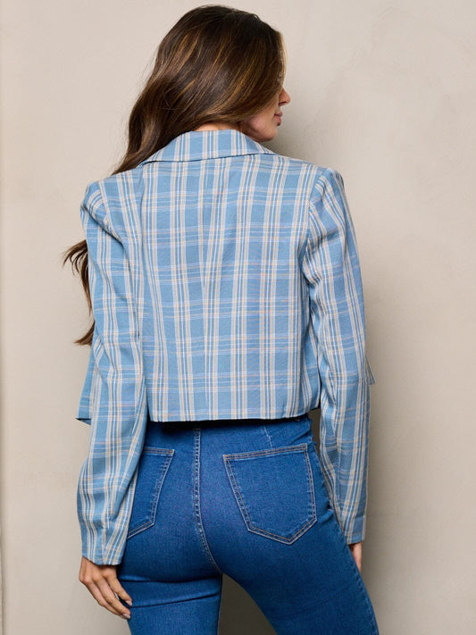 SKYLINE PLAID BLUE LIGHTWEIGHT BUTTON CLOSURE BLAZER