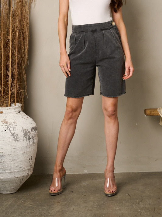 RAW EDGE BLACK WASHED POCKETS DENIM SHORTS