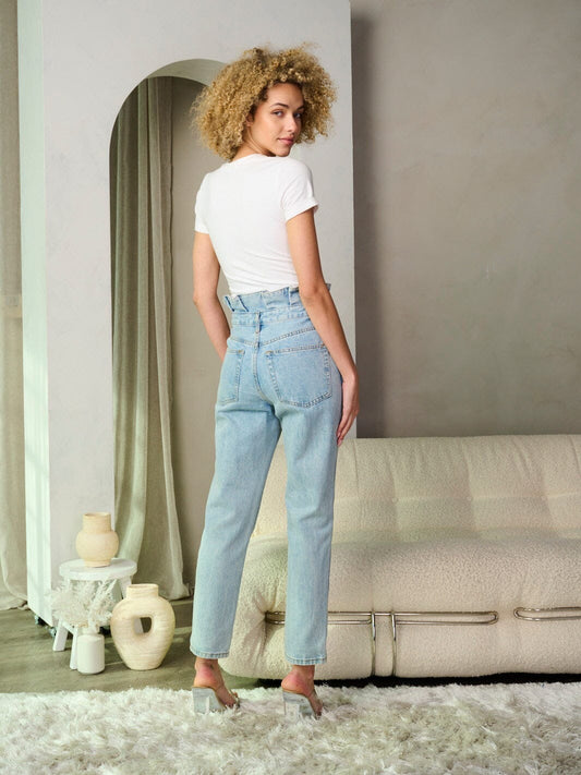 LT. BLUE DESTROYED 90'S CUFFED STRAIGHT LEG DENIM JEANS