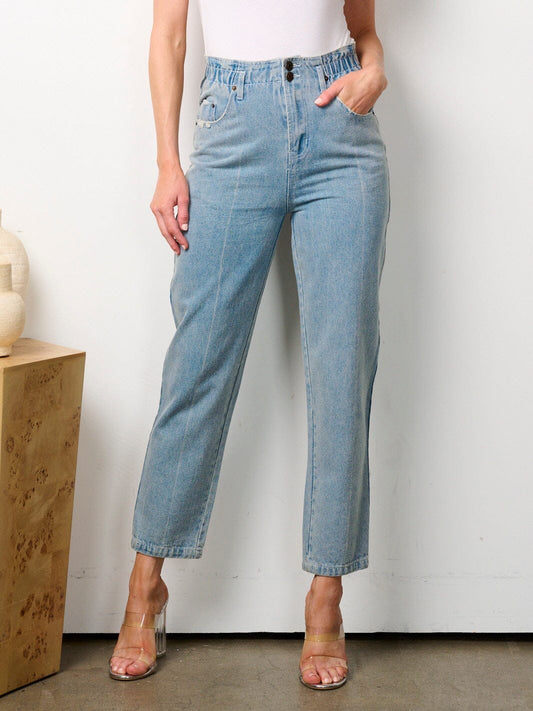 LT. BLUE RUFFLE PAPER BAG HIGH WAIST DENIM CROP JEANS