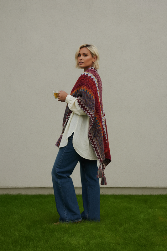 Colorful Sunset Draped Tassel Crochet Ruana
