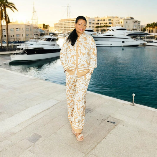 SUNSET PETALS BEIGE & CREAM WIDE LEG TWO PIECE SET