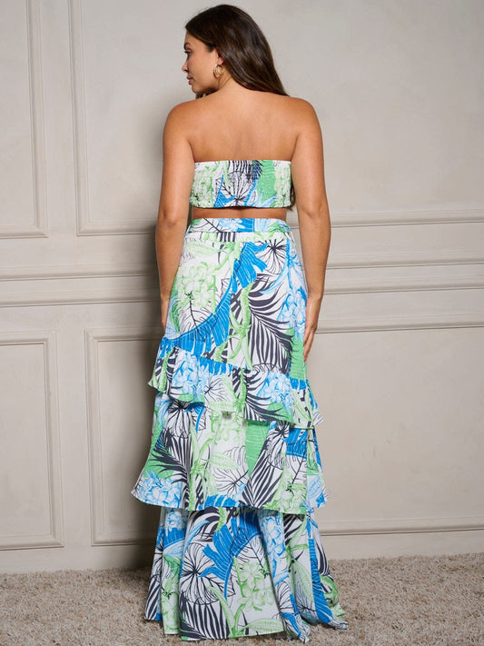TROPICAL FOLIAGE CROP TOP & RUFFLE SKIRT 2 PC SET