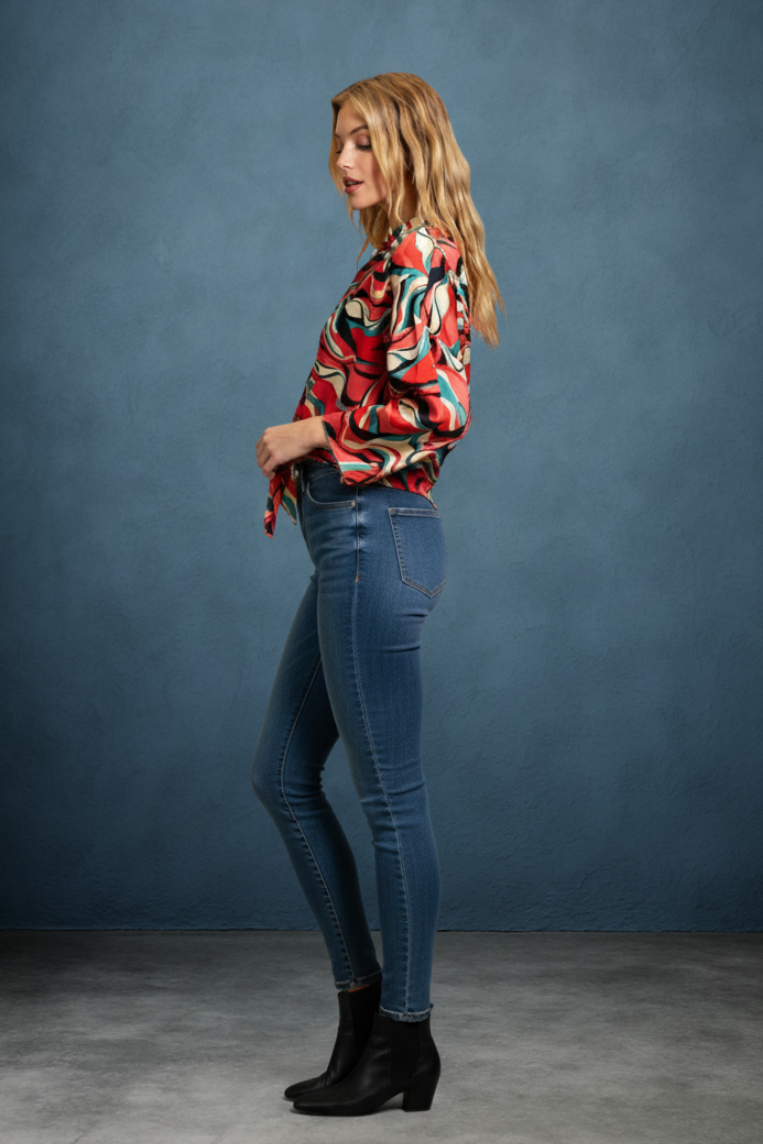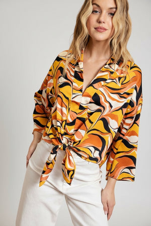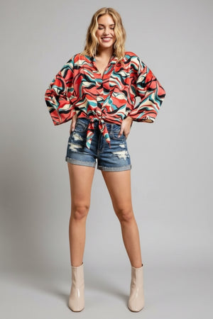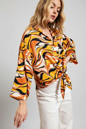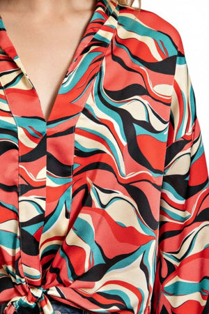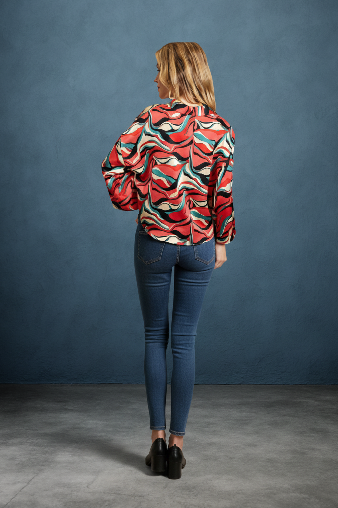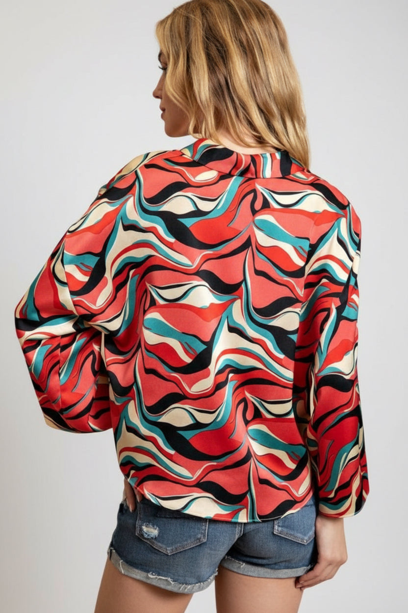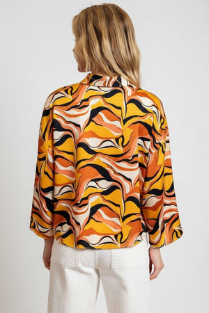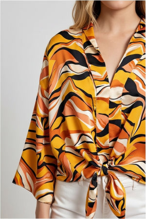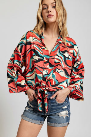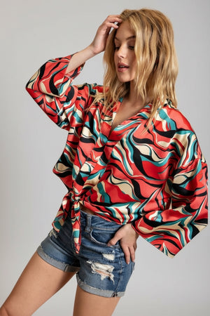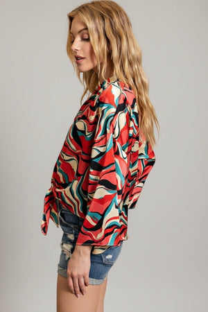 RETRO WAVE TIE ABSTRACT WIDE SLEEVE TOP
