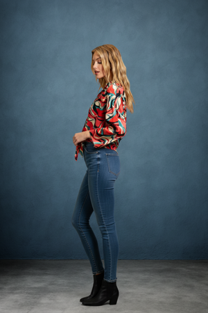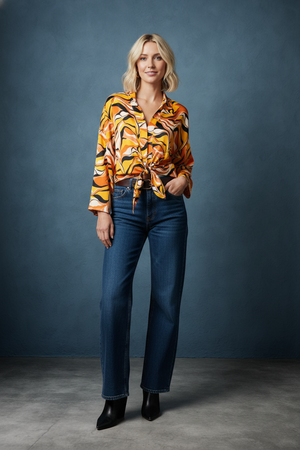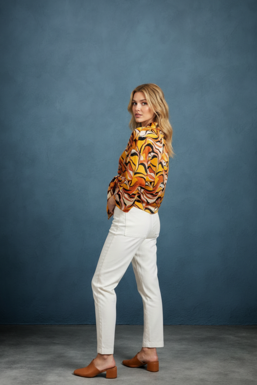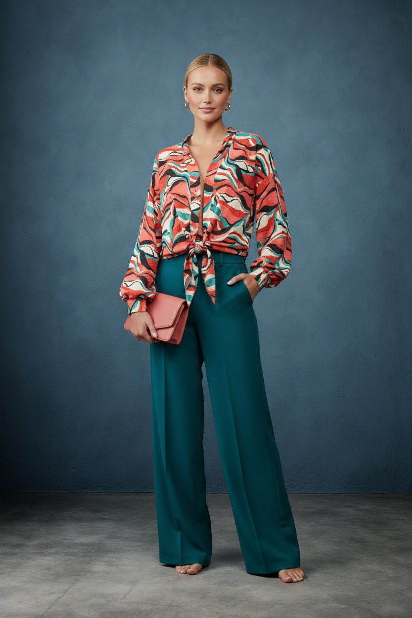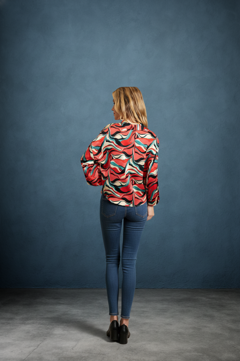 Embrace bold style with the Retro Wave Tie Abstract Wide Sleeve Top. Featuring eye-catching abstract patterns and dramatic wide sleeves, this top adds a unique flair to your wardrobe. The tie detail enhances its retro charm while offering a customizable fit. Perfect for making a statement at any casual or dressy occasion, it combines comfort and standout design effortlessly. Elevate your look with this versatile, fashion-forward piece.