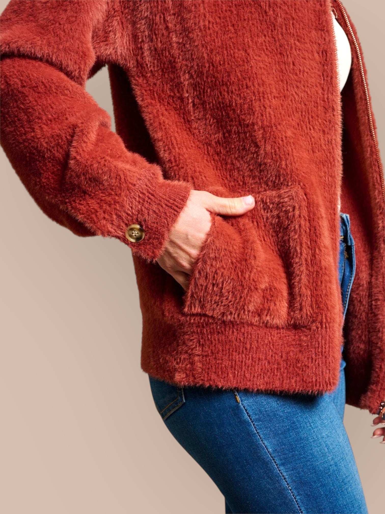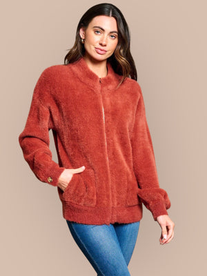 Amber Horizon Eyelash Zip Up Sweater Jacket