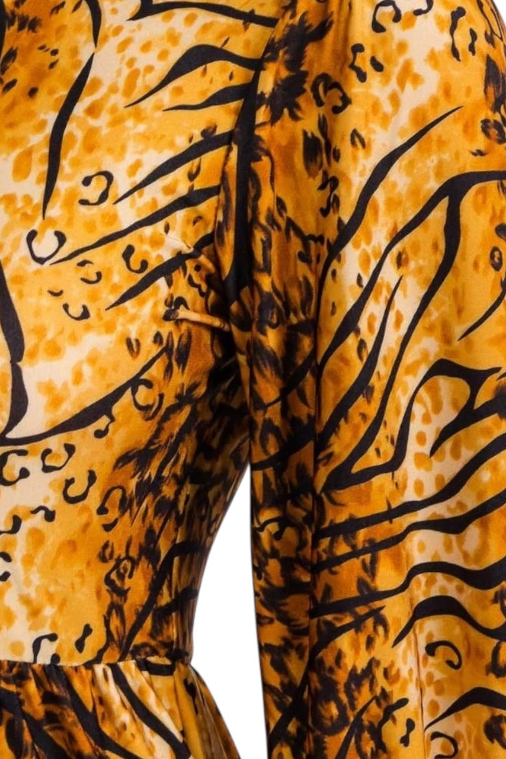 Bring a wild and whimsical touch to your wardrobe with the Tiger Print Blossom 3/4 Sleeve Front Pocket Tiered Midi Dress. Its lively tiger print and flirty tiered design create a fun, energetic look, while the 3/4 sleeves and convenient front pockets add playful practicality. Perfect for those who love to mix bold style with everyday comfort. Embrace confidence and flair aligned with our high-quality, fashion-forward pieces. Enhance your wardrobe – shop now and stand out effortlessly! 95% Polyester 5% Spandex.
