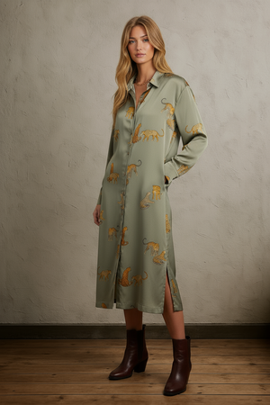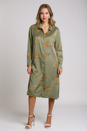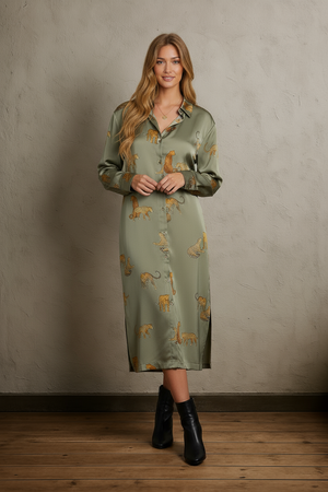 Leopard / Cheetah Print Button Down Midi Dress