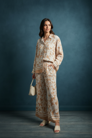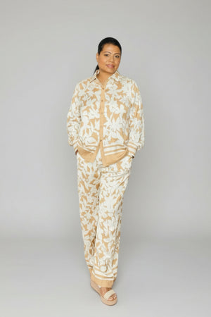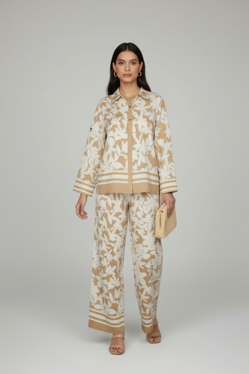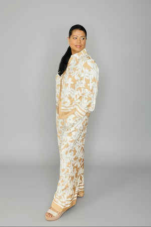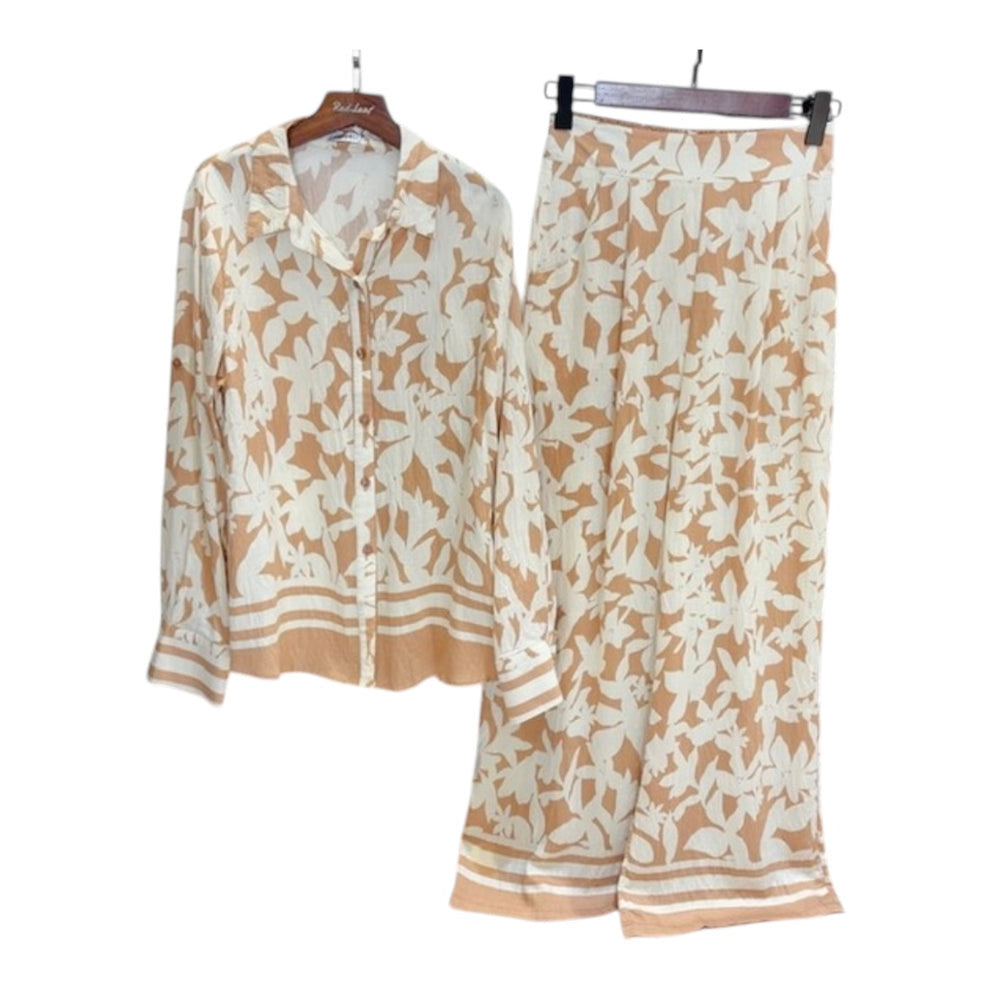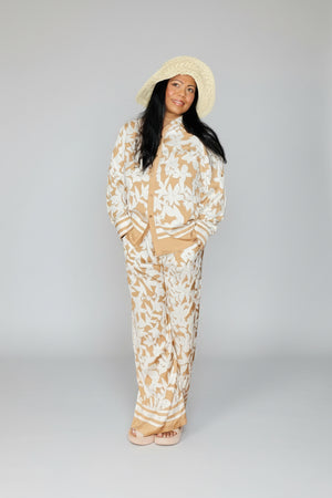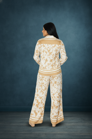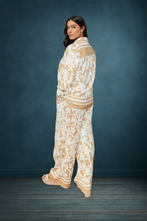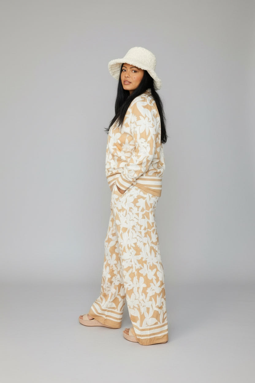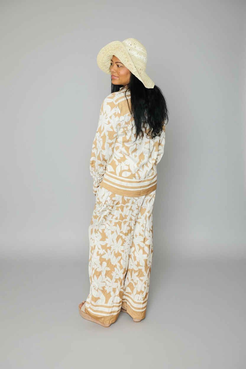 SUNSET PETALS BEIGE & CREAM WIDE LEG TWO PIECE SET