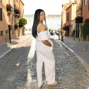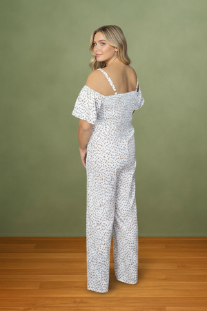 VENETIAN BLOOM OFF SHOULDER WHITE FLORAL TIE BELT JUMPSUIT