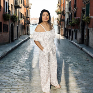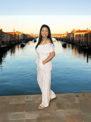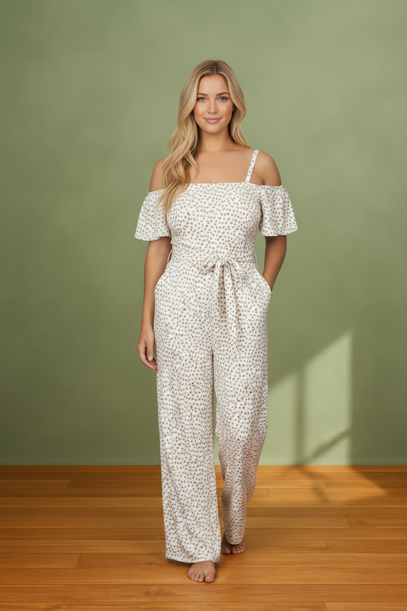Elevate your wardrobe with the Venetian Bloom Off Shoulder White Floral Tie Belt Jumpsuit. This elegant piece features a delicate floral pattern and an off-shoulder neckline that highlights your silhouette with subtle grace. The adjustable tie belt cinches the waist for a flattering fit, combining comfort with refined style. Perfect for sophisticated occasions, this jumpsuit offers effortless charm and timeless appeal.