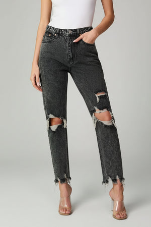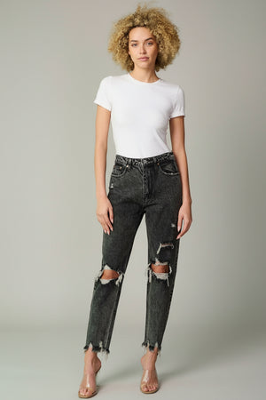 Elevate your casual wardrobe with Mandalay And Company's CHARCOAL GRAY WASHED BUTTON CLOSURE HIGH WAISTED DISTRESS RAW HEM DENIM JEANS! Featuring a vintage wash and tasteful distress details for a trendy, worn-in vibe. The button closure adds classic style and a secure fit. Ideal for cool day-to-night transitions, these denims are your new go-to. Mandalay And Company offers fashion-forward pieces that last.