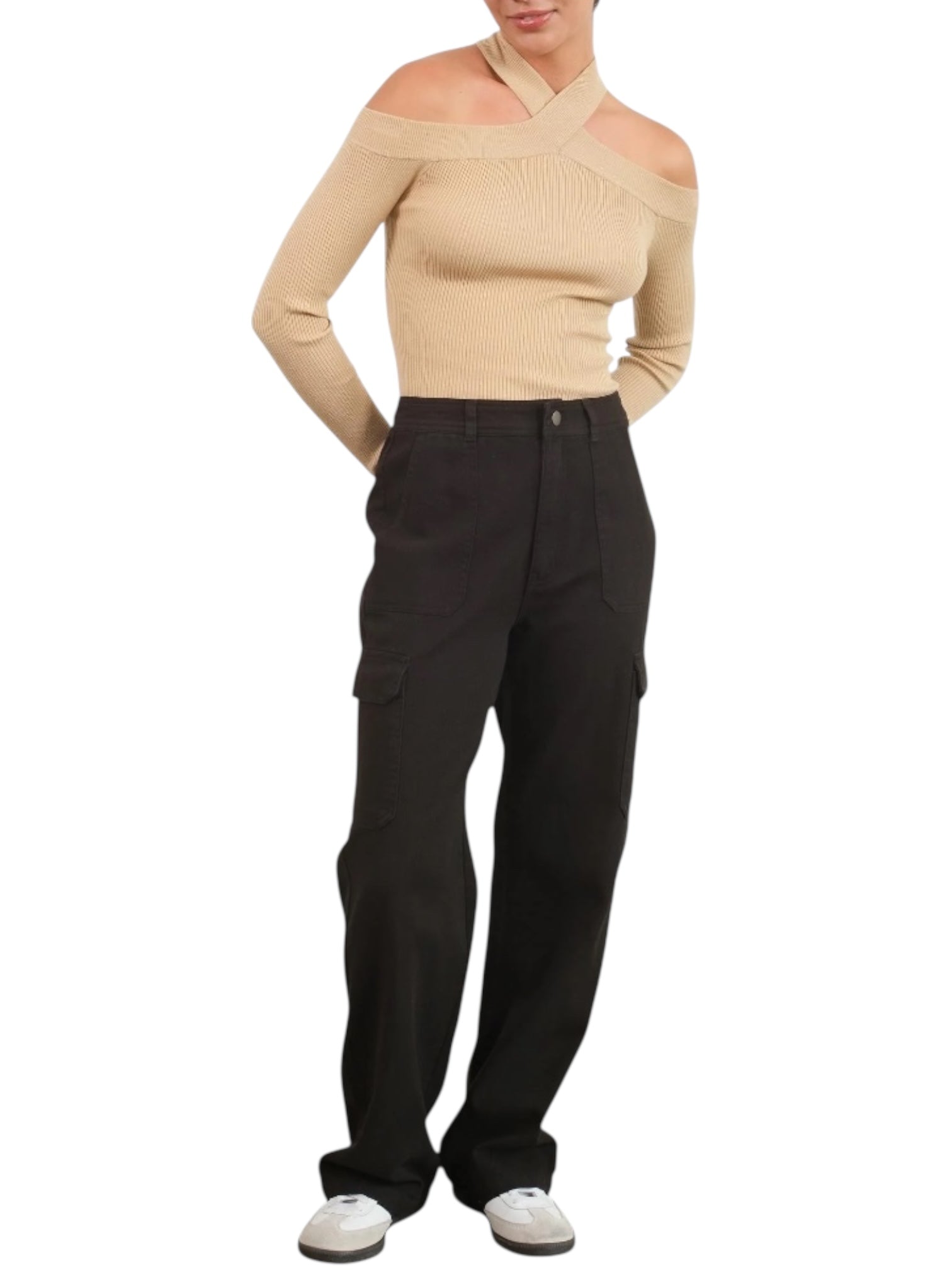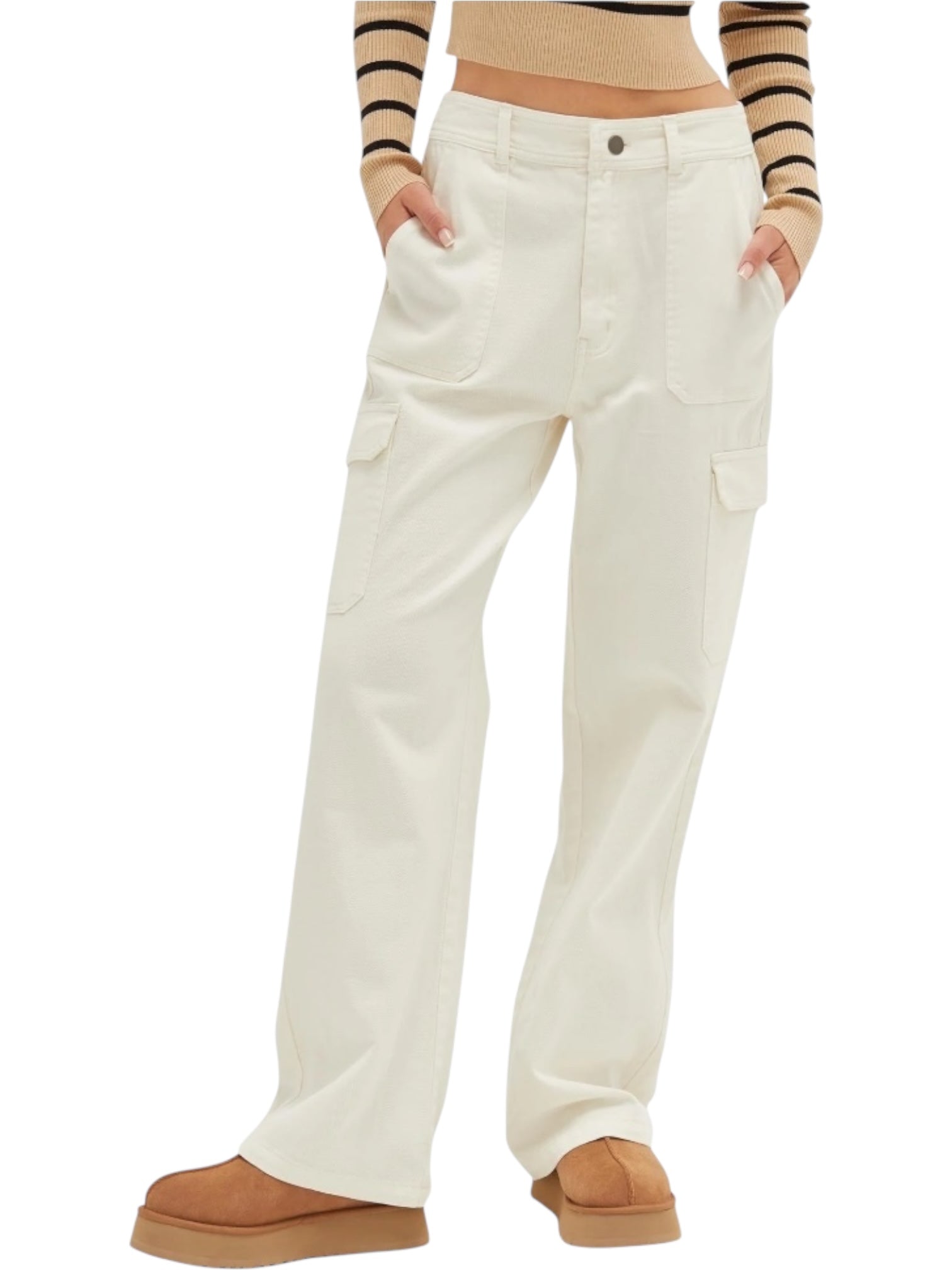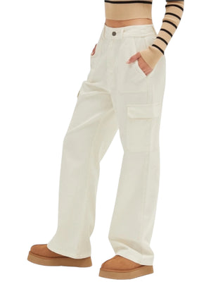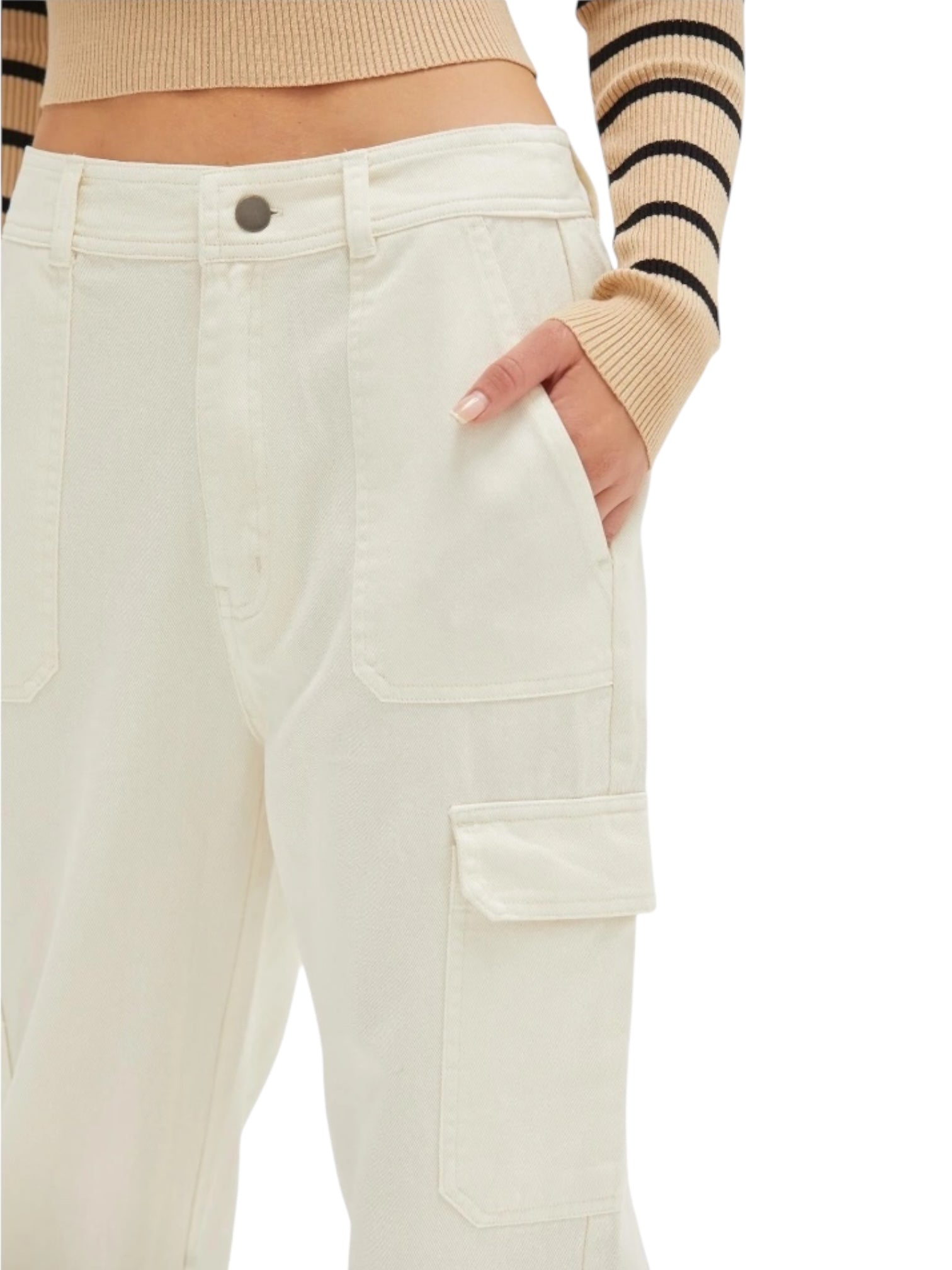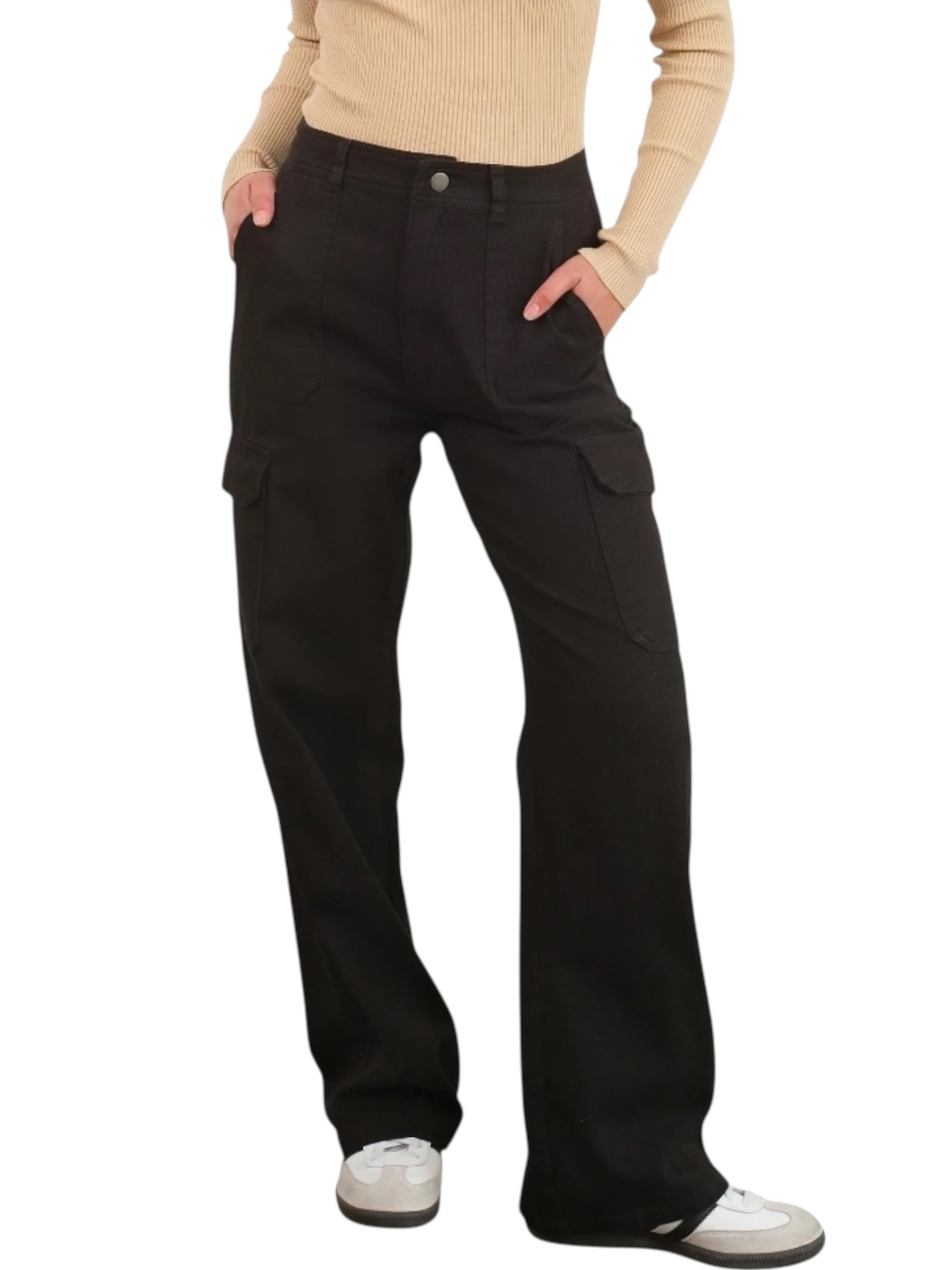 Elevate your everyday style with these high-waisted wide-leg cargo pants—the perfect blend of comfort and contemporary edge. Designed with a flattering high rise that elongates your silhouette, these pants feature spacious cargo pockets for practical storage without sacrificing sophistication. The relaxed wide-leg cut offers unrestricted movement while maintaining a polished, fashion-forward look. Versatile enough to dress up or down, they're an essential addition to any modern wardrobe. Whether you're running errands or making a statement, these cargo pants deliver both functionality and undeniable style.
