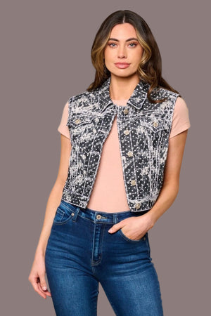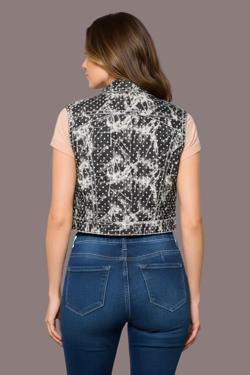 URBAN SPLASH DOT BLACK WASHED DENIM VEST