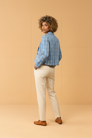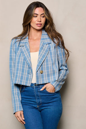SKYLINE PLAID BLUE LIGHTWEIGHT BUTTON CLOSURE BLAZER