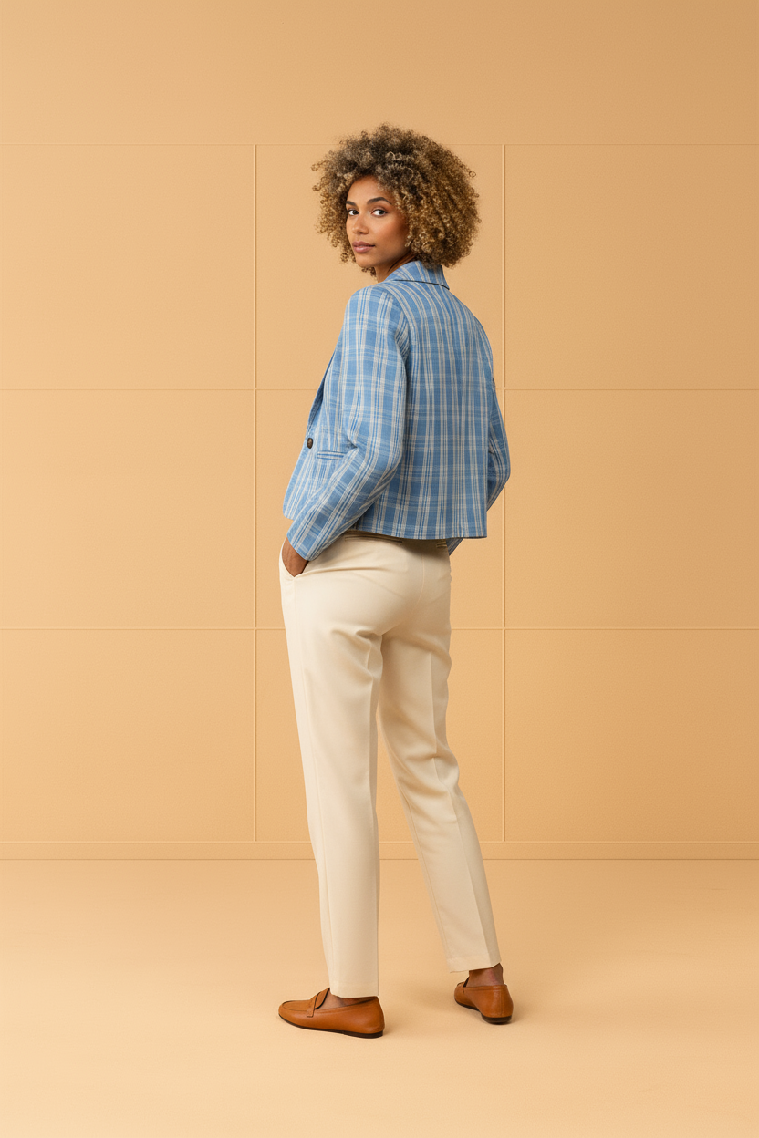 Elevate your style with the Skyline Plaid Blue Lightweight Blazer, designed for effortless sophistication. Its breathable fabric ensures comfort throughout the day, while the classic button closure adds a polished finish. Perfect for both professional settings and casual outings, this blazer combines timeless plaid with modern ease, making it a versatile addition to your wardrobe.