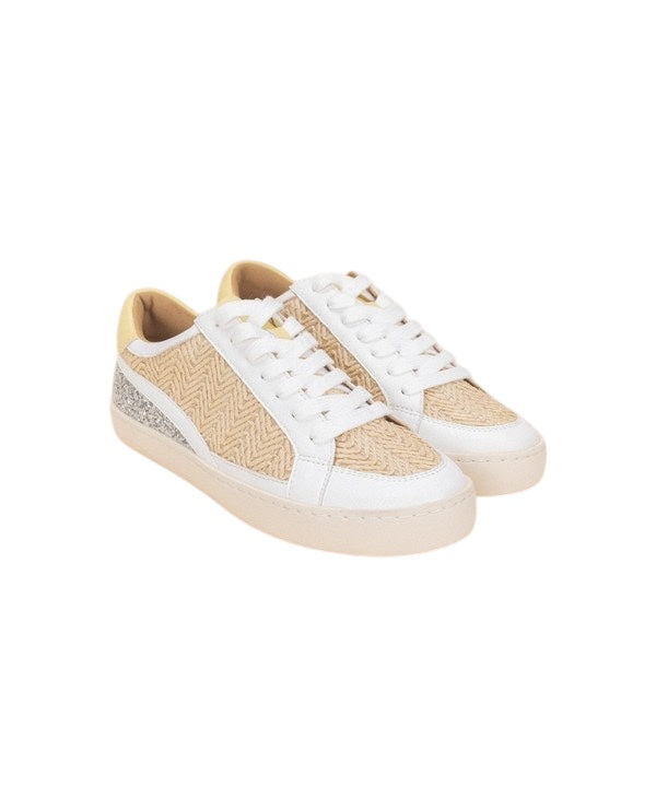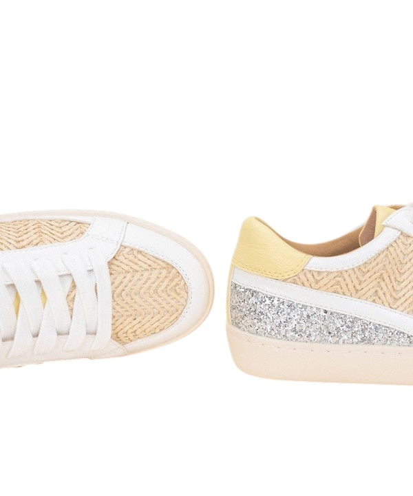Yellow Lace Up Metallic Sparkle Boho Harlow Sneakers