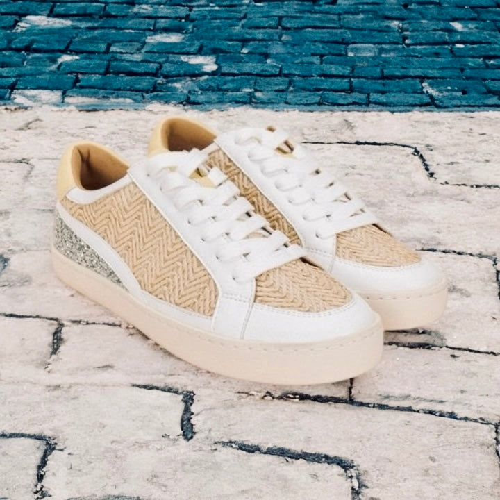 Elevate your style with our Boho Sparkle Harlow Sneakers. These trendy shoes feature bohemian accents and a touch of sparkle, adding a unique flair to any outfit. Perfect for any fashion-forward individual looking to make a statement. Step into effortless style and stand out from the crowd with our Harlow Sneakers.